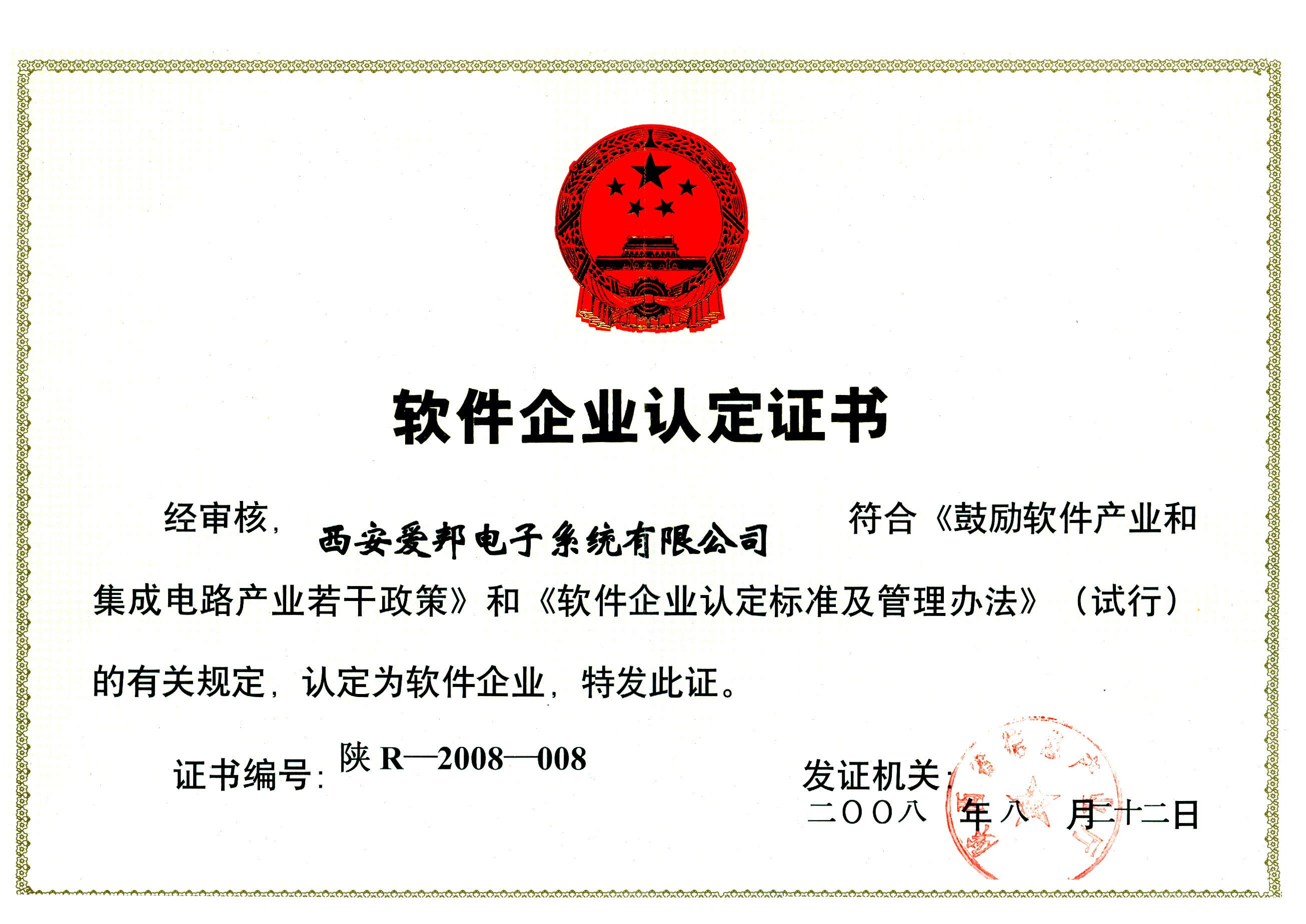 愛邦公司是陜西省認定的第一批國家高新技術(shù)企業(yè)、第一批省級優(yōu)秀軟件企業(yè),是西安高新區(qū)“優(yōu)秀瞪羚企業(yè)”和“知識產(chǎn)權(quán)優(yōu)勢企業(yè)”,企業(yè)先后獲得西安市政府“中小企業(yè)創(chuàng)新工程”、陜西省政府“13115重大科技專項”、國家科技部“中小企業(yè)創(chuàng)新基金”支持,被國家知識產(chǎn)權(quán)局評為“專利工作先進單位”,企業(yè)商標連續(xù)三次榮膺“陜西省著名商標”稱號。